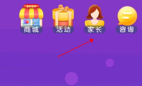 2、进入软件,点击右上方“家长”,进入账号中心