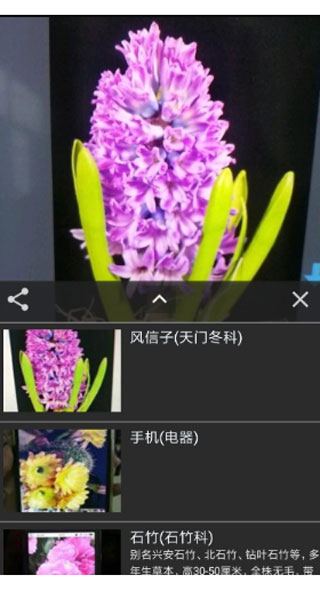 2、软件在识别完毕之后,就会在下方展示出许多花朵的图片,大家能够按照相似程度来判断花朵的类型