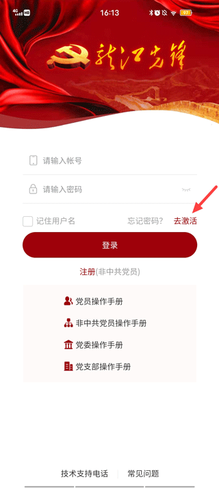 1、打开软件后,在注册登录页面,点击“去激活”。
