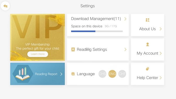 3、设置,用户中心,这里有阅读设置,还有语言设置,语言分为简体中文和繁体,还有英语,英语设置如下图二,为了培养孩子的英语阅读能力可以设置英语阅读。