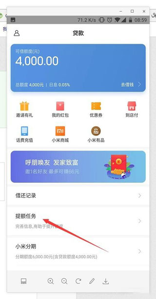 目前我们使用小米的这个贷款软件的时候初始价格是4000元,这个价格显然不够我们使用的,那么我们怎么样才能让额度提升呢,详细方法如下: