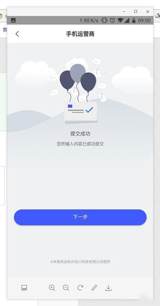 5、系统通过消息对比,如果信息正确则提交成功,点击下一步