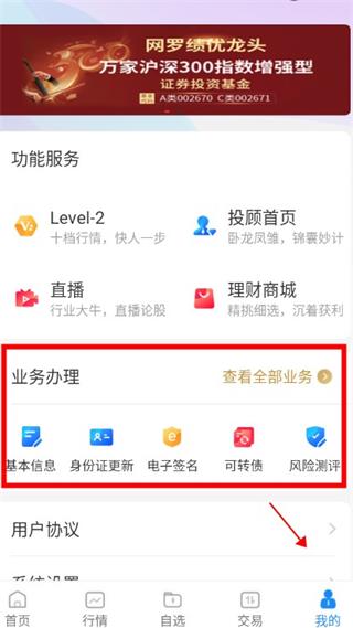 3、点击“我的”,选择业务办理;