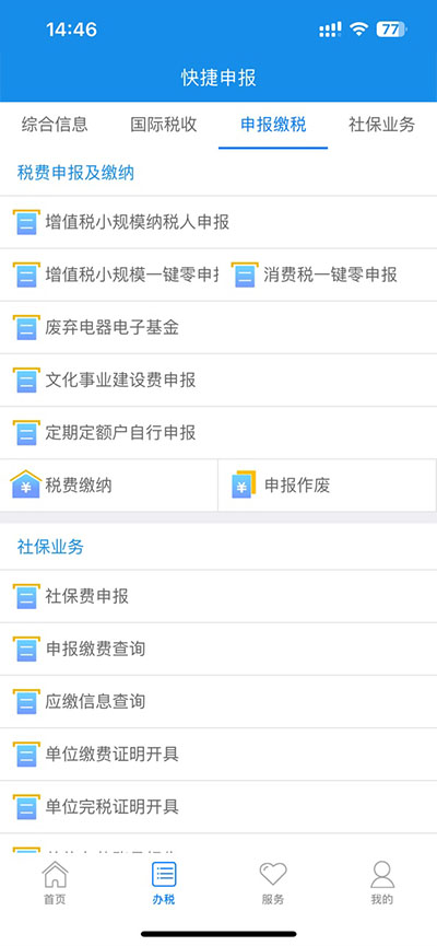 吉林移动税办app是由国家税务总局吉林省税务局专门为吉林省居民打造的一款线上移动端网络办税软件,用户可以直接通过该应用办理各种税务服务和查询,让纳税人足不出户即可办理税务业务和了解税收政策的几乎全部功能。同时软件内置了社保业务、快捷申报、申报缴税、国际税收、查询中心等服务,还可随时查询当前办税进度以及结果,让办事进度更加公开透明,无需担心业务无人处理,也不用担心线下排队等待以及通勤时间过长的问题!吉林移动税办app给用户带来更加便捷、优质税务服务,一站式的个税申报、发票查验以及纳税知识学习等服务全都可以找到。有需要的用户可以来下载体验!