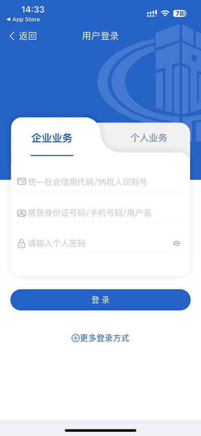 2、用户登录页可以通过两种方式登录【企业业务】、【个人业务】,新用户点击【用户注册】进入注册页;