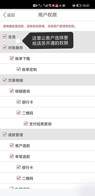 1、进入商户之家App,在“我的→用户管理→添加用户”中输入操作员的用户名(自主编辑)、手机号或邮箱等,配置用户权限,新增成功后,