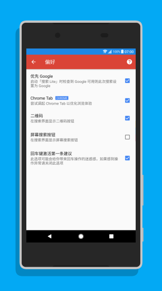 搜索 Lite是一款OrekieSun的万能手机搜索工具。不同于那些形形色色的手机助手,它可以通过一串简单的字符串便可以帮助我们快速搜索应用、安装的app、快递短信、联系人、本地存储的音乐或者通过搜索引擎找到与之相关的信息,输入关键词后,点按"Enter"便可快速打开第一个搜索结果。除了搜索本地内容,该软件也可以作为一个搜索框进行网络搜索,我们可以指定常用浏览器来打开搜索结果,如果你安装了 Chrome,便可以设置搜索时调用Chrome Tab,方便、美观且更为快捷。它提供小部件和home键快捷启动两种方式,搜索 Lite 的引擎库不局限与主流引擎,除了常规搜索引擎搜索外,在搜索 Lite的引擎库你可以添加各种冷门搜索引擎,通过给不同的引擎添加快捷标签,你可以在不切换引擎的情况下迅速调用默认搜索引擎以外的搜索引擎。搜索 Lite在搜索更多内容上做起了大文章,力求成为真正的"万能助手"。