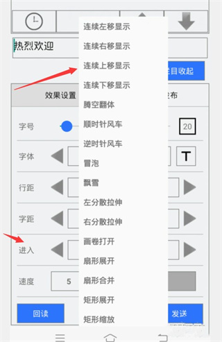 5、在【栏目】内输入LED显示的文字下边设置文字效果。