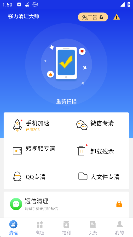 5、手机卡,就用强力清理大师!清理更强力,更彻底