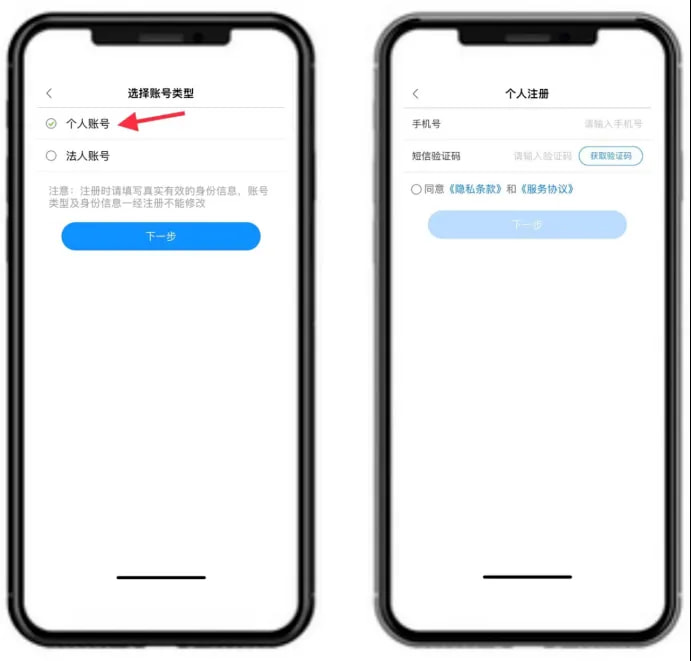 2.按照提示注册个人账号。
