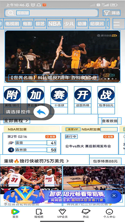 2、以我想在打开腾讯体育之后自动点击NBA栏目为例。首先点击中间的录制按钮