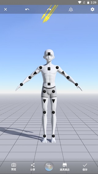 - 先进的物理引擎——让你能够像操纵真实的人偶一样操纵3D模特,并能根据你想要的动态姿势自动调节