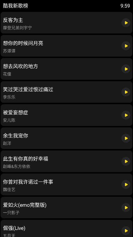我们点进酷我新歌榜,就会显示很多歌曲;