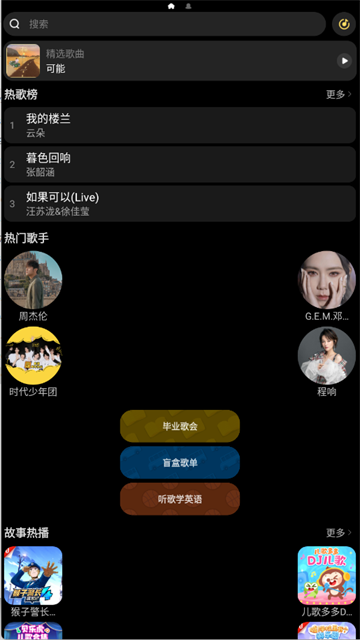 进入这个页面后,我们可以语音搜索歌曲,也可以查看本地音乐、自己喜欢的音乐以及最近播放的歌单;