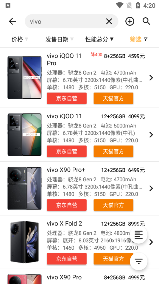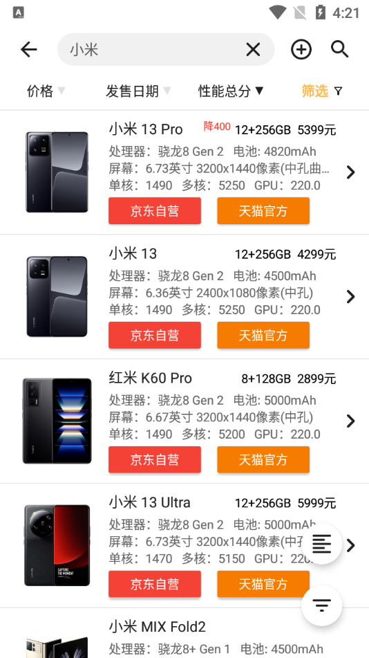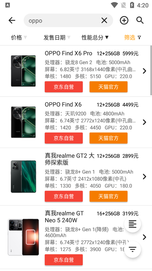 7、本应用给出的手机性能分数并不能作为购买手机的唯一考虑因素。购买手机需要考虑手机的外观、屏幕、通话质量、续航、系统等等各方面因素,消费者购买手机最好在实体店试用手机后再作决定。