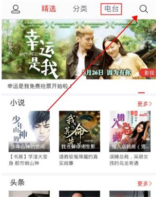 1、打开软件,在主界面首页中,选择上方的“电台”模块;