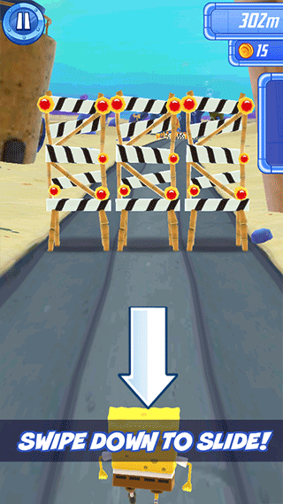 海绵宝宝跑酷游戏是根据海绵宝宝真人电影改编而成的跑酷游戏,游戏中蟹黄堡的汉堡丢失了,玩家将扮演海绵宝宝为寻找汉堡而展开全新的跑酷旅程。玩家需要控制角色避开障碍物,让角色跑得更远更长时间,沿路收集更多的金币,地图会随机生成道具,使用后有段时间处于无敌状态可以撞开障碍物,需要注意道具的使用时间,来利用道具更好的闯关吧。同时还可以给海绵宝宝换上个性的装备,解锁炫酷的驾驶工具。喜欢这类游戏的玩家快来下载体验吧。
