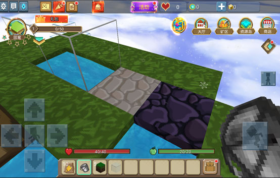 打开背包,使用收集到的圆石或者其他方块,铺一条阶梯,就可以顺着阶梯到达其他空岛,每一个空岛都有一个宝箱,藏着丰厚奖励,等你探索!