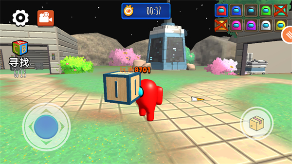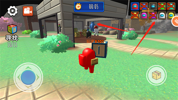 4、小编以第一个关卡为例,这个关卡需要你和队友找出13个积木箱,在寻找的过程中你要注意不要被随时会出现的彩虹朋友找到并杀掉,不然游戏结束。