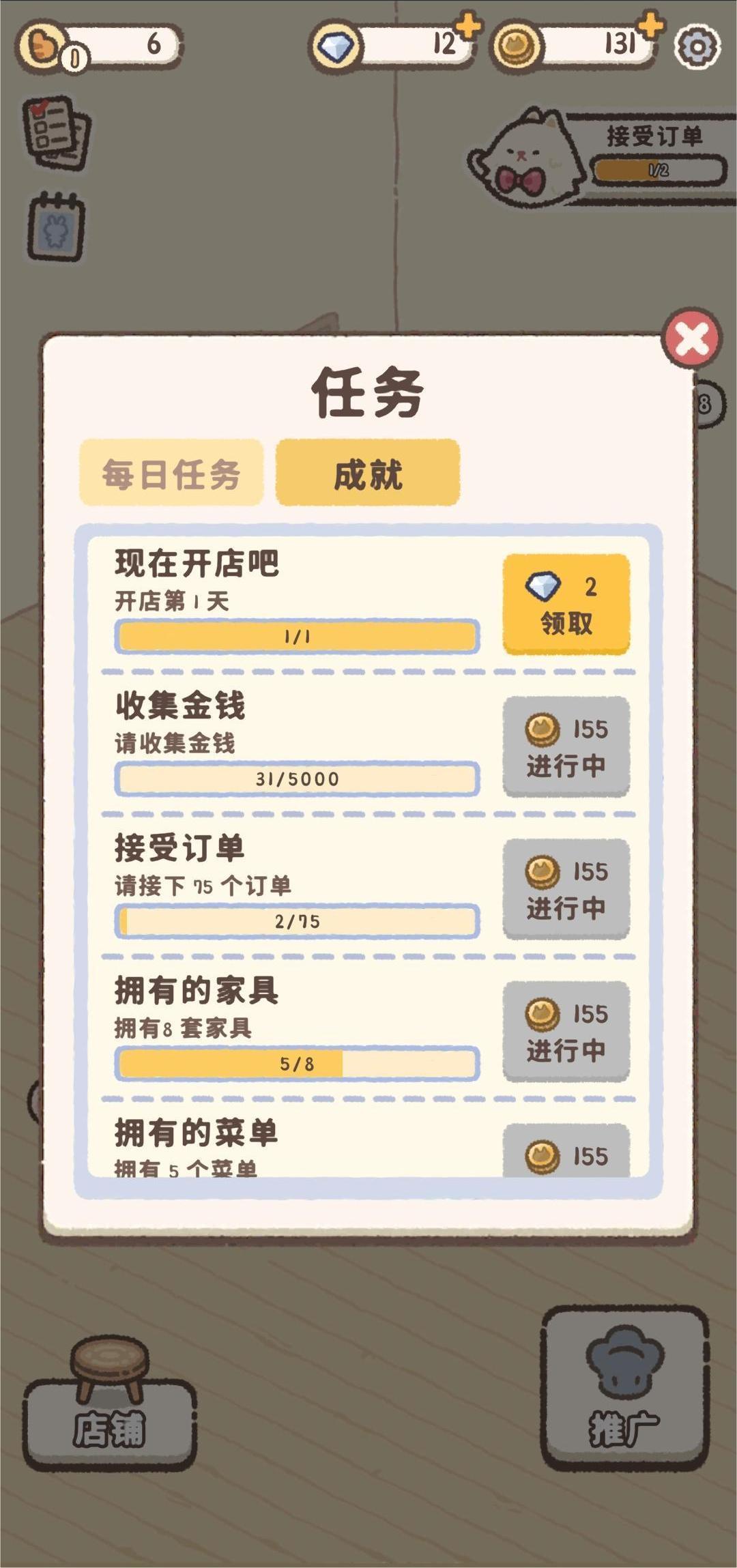 3、一步步完成右上角的引导与左上角的任务图标,就可以慢慢发展扩大店面啦~