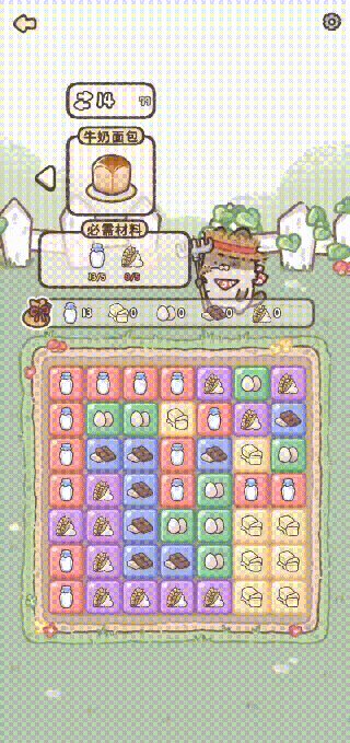 5、食材(大部分)则通过消消乐来获取,上方会显示制作甜品所需要的材料数量,需要哪种材料就消哪种~