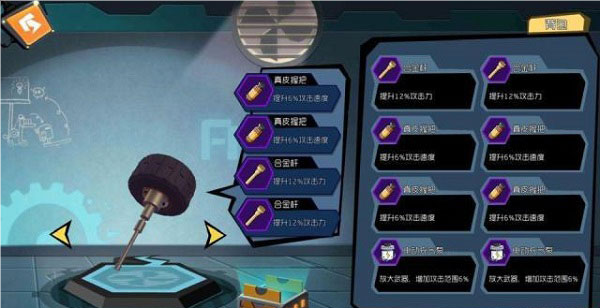 暴力车轮属于空投类武器,初始伤害就很高,鸭锤的升级版。所以我们就推荐全部叠加伤害,争取做到一击秒杀。可以选择的搭配方案有三攻击力一速度又或者是全攻击力。合成后伤害简直爆表!