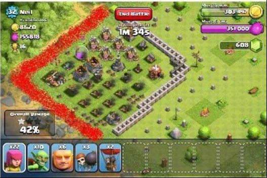 初级的村庄通常面对的是主城等级高你一级甚至两级玩家的进攻。在兵种等级的碾压下无论多巧妙的布阵也都是不堪一击的。我们接下来要解析的是如何通过布阵来防御同等级玩家的攻击,尽可能的守护好你的资源。
