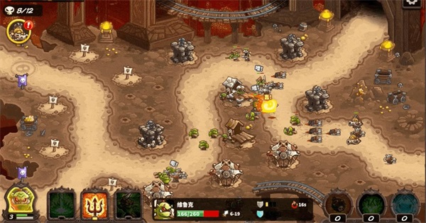 如:老城回廊这场战役,敌军会从上下两路进攻我方阵地,且前期的杂兵数量较多。所以在前期经济不充裕的情况,优先在T字路口建立两个炮台保证输出,利用英雄维鲁克的英雄技能与呆头鹅组成初期拦截攻势,就能顺利发育到后期。