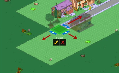 3、点击道路标识后,就可以进行道路布局了,可往空闲处拉伸,不需要玩家一块一块的布局。