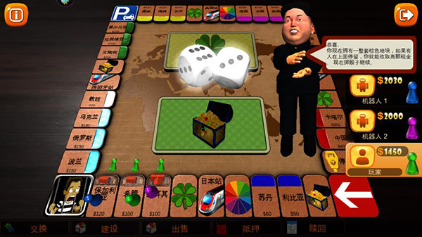 1、经典的大富翁玩法,简单的游戏规则,运气与策略并存才是你的获胜之道。