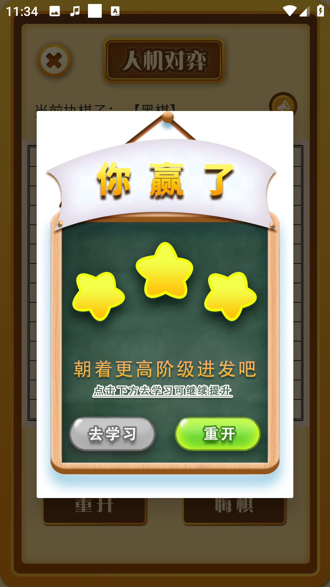 2、选择与人机对弈,率先完成5连子的玩家获得胜利
