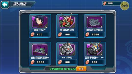 此外,远征币可以在“商店”兑换zz敢达碎片、捷多碎片、高级强化材料等。