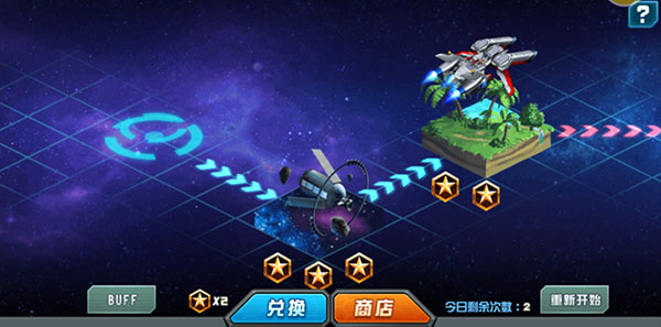 8、每个关卡完成后会获得1-3星评价,星数可以在属性兑换界面兑换属性加成buff或兑换奖励,兑换的buff只能作用于下一关卡。