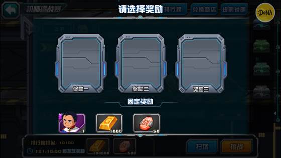 打败一层守卫时,除了有固定的丰富奖励外,还有机师碎片、挑战币、提升buff 三种奖励可选,玩家可根据自己的需求选择。当通关10、20、30等特定层数后,在右侧有相应金币、挑战币奖励领取。每周一会重置一次,根据排名发放每周奖励,重置后玩家可以直接一键扫荡,到达之前挑战的最高层数。