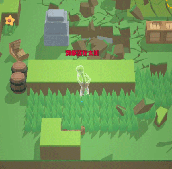 10、此外,场景中还有moba类游戏里草丛的设定。进入草丛后,会进入隐身状态,外面的鸡看不到你。如果你不想参与到炮火连天的正面战场中去,躲在草丛里当个老阴B,最后趁机夺取胜利,也是个不错的选择。