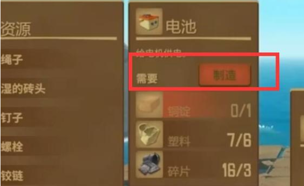 2、需要铜锭1个,塑料6个,碎片3个,收集齐后点击制造选项即可
