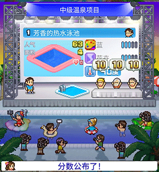 游戏的核心就是经营和建设,你需要根据客人的需求搭建餐饮店、调配池水颜色,还要布置各种游乐设施。最有趣的是还能通过添加气味来提升泳池的吸引力,比如用蓝莓或者咖啡豆增加香味。不过说实话,评选系统有点复杂,得按照等级一步步来,每个级别都有不同的要求,但这也让游戏更有策略性。