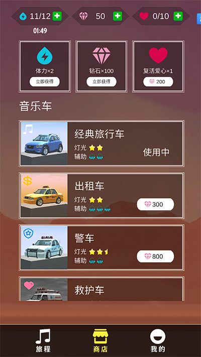 2、下滑直接即可查看更多车辆,每种车均拥有不同的属性,灯光可在夜晚为玩家提供更好的视野,而辅助可为玩家带来更轻松的游玩体验,玩家可根据自己的需求来购买车辆