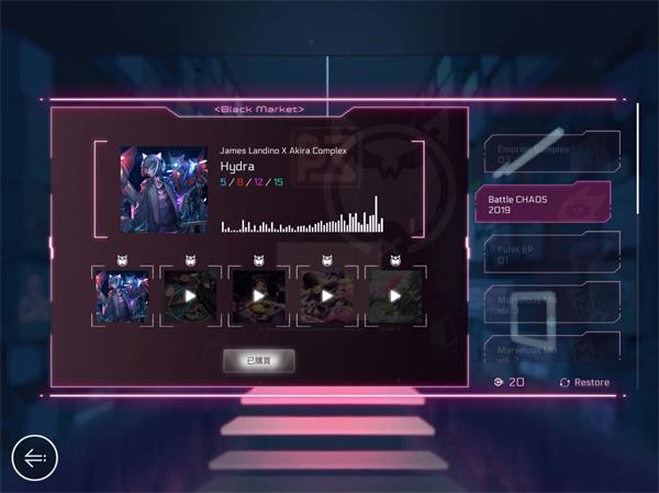 黑市系统,是不影响游戏主线剧情外,额外推出的歌曲扩展包。大家可以在这里试听自己喜欢的曲目并进行购买,通过花费CCOIN解锁不同角色的歌曲包,解锁的歌曲可以在对应角色内进行游玩。