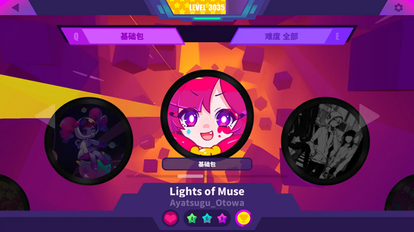 2、难度适中,各难度级别过渡平缓,作为一个音游小白,我觉得非常容易入手,并且能从这种平缓的难度提升感觉到了自己的成长。