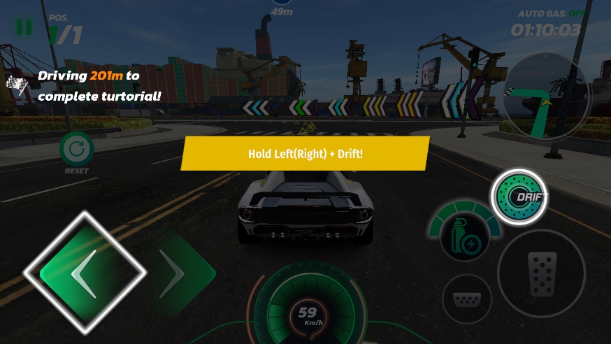 5、当还剩201米的时候,玩家需要同时点击下图的两个按钮,可以进行漂移;