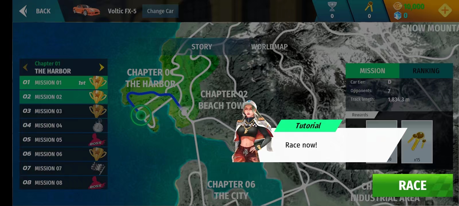9、然后就可以开始竞赛了,这里有三种游戏模式,分别是故事、世界地图以及多人模式,点击【race】;