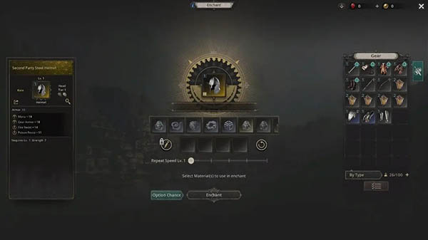 装备附魔:为装备附魔以改变其等级或选项。附魔的材料(精髓)可以透过耕作或分解不需要的装备获得。获得的材料将根据精髓的类型随机决定。一旦附魔,就不能回到之前的状态。去村庄的NPC 小贩那里给你的装备附魔。