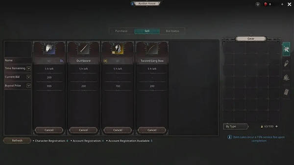 玩家可以在游戏的拍卖场出售装备,用游戏内的货币红宝石项链进行交易。玩家只能在拍卖场进行交易,在拍卖场使用的货币不能兑换成现金。在拍卖场出售物品获得的红宝石项链将在24 小时后存入您的游戏帐户。