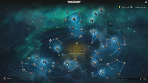 黄道宫天赋: 在十二黄道宫中,每个黄道宫都代表一组被动技能(天赋),玩家可以使用天赋点来将其启动。天赋将在10 级时解锁,每升一级都会获得一个天赋点。只有在连接到已分配节点时,节点才能启动。与常规天赋点不同的是,一旦选择了一个专精天赋,其他专精就不能被选择,并且设定了可以投入的最大天赋点数。与能力一样,天赋点也可以透过使用金币或特定装备重置。