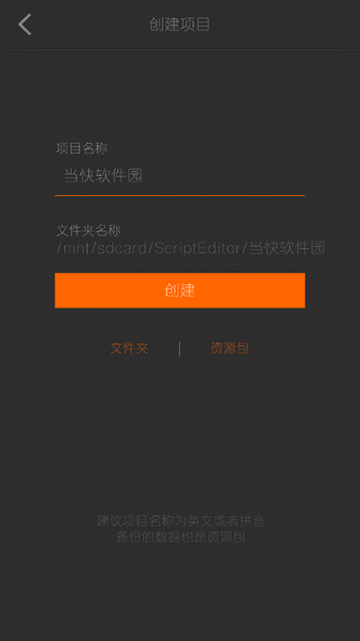 2、填写项目名称和文件夹名称;