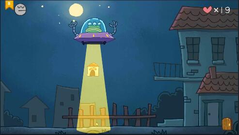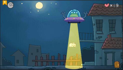 2、第二关的目标是中间的狗屋,我们需要点击屏幕,然后将狗屋吸到飞碟上即可。