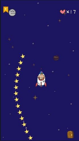 4、这个关卡需要我们一直按住屏幕即可,让火箭飞到太空,去寻找我们的狗狗。