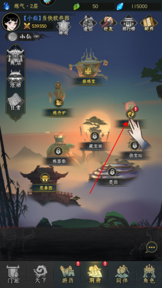 1、点击进入“洞府”页面