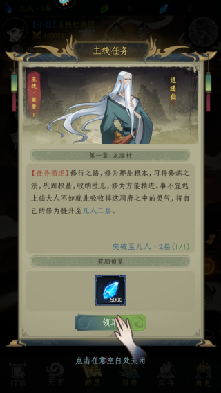 4、进入游戏后,点击主线任务,跟随主线任务进行游戏,加快成长;